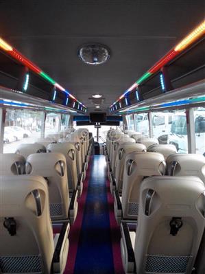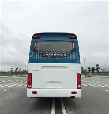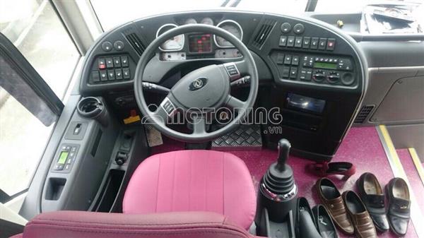 HAECO UNIVESER K47S Xe ghế ngồi 47 chỗ THÔNG SỐ KỸ THUẬT CƠ BẢN - Số chỗ: 47 chỗ ngồi - Kích thước (dài x rộng x cao): 12160x2500x3450 (mm) - Động cơ: YUCHAI YC6MK380-30 + dung tích xy lanh: 10.338 cc + công suất cực đại: 380 (Ps)/1900 (vòng/phút) + moment cực dại: 1650 (N.m)/1100÷1500 (vòng/phút) - Hệ thống nhiên liệu: Diesel 4 kỳ, 6 xylanh thẳng hàng phun dầu điện tử CRDi, tăng áp, làm mát bằng nước. - Hộp số Fastgear Mỹ, 6 số tiến, 1 số lùi. - Bộ ly hợp: 1 đĩa khô, dẫn động thuỷ lực trợ khí nén. - Bộ vi sai ( Ruột cầu sau) nhập khẩu Hàn Quốc. - Hệ thống treo: Phụ thuộc, phần tử đàn hồi là bầu hơi (Firestone – Mỹ ), giảm chấn thuỷ lực. - Hệ thống lái: Trục vít Ê-cu bi, trợ lực thuỷ lực. - Hệ thống phanh Wabco công nghệ Châu Âu: tang trống, dẫn động khí nén hai dòng. Trang bị thêm hệ thống ABS và phanh điện từ TERCA cao cấp. - Lốp Michellin: trước/sau: 12R22.5/Dual 12R.22.5 TRANG THIẾT BỊ, TIỆN NGHI: - Ghế hành khách bọc simili cao cấp, kiểu 2-2. Mỗi ghế đều trang bị lỗ cắm sạc thiết bị di động. - Ghế tài xế loại lớn cân bằng hơi tự động nhập khẩu Hàn Quốc. - Hệ thống âm thanh DVD + radio AM/FM. Mành hình giải trí LCD 32 inches. - Hệ thốm Ampli, Ổ cứng HD 500GB, Camera lùi, màn hình LCD trên táp lô. - Hệ thống điều hoà KB – Hàn Quốc. Tủ nóng lạnh 2 chiều, rèm cửa cao cấp. - Gương chiếu hậu chỉnh điện, sấy điện. Kính cửa sổ tài xế điều chỉnh điện. - Cửa lên xuống dạng trượt, đóng mở bằng khí nén. Kính hông dạng kính liền. - Hệ thống đèn trần, đèn đọc sách, đèn ngủ, đèn LED sang trọng. - Cụm công tắc táp lô, vô lăng Hyundai. • BẢN CAO CẤP: + trang bị điều hoà Universe đời mới (loại đầu nén 3 đỉnh, dàn lạnh + sưởi táp lô). + giá hành lý cao cấp cùng với dãy đèn trần loại dài Palolâm Universe đa sắc màu nhập khẩu Hàn Quốc.