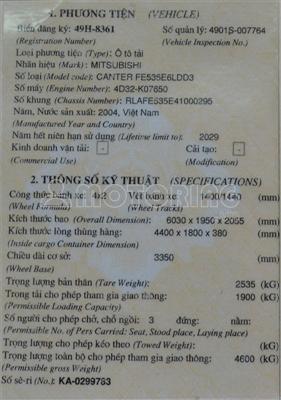 Thông tin xe được chào bán